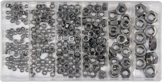 ZESTAW 300 SZTUK NAKRĘTEK NIERDZEWNYCH METRYCZNYCH ZAWIERA ROZMIARY M3, M4, M5, M6, M8, M10.
