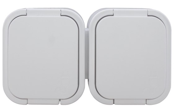 B2 GNIAZDO PODWÓJNE N/T Z/U IP54 BIAŁE KLAPKA BIAŁA ABEX