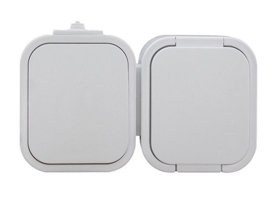 B2 GNIAZDO POJEDYNCZE N/T Z/U IP54 + WYŁĄCZNIK BIAŁE ABEX