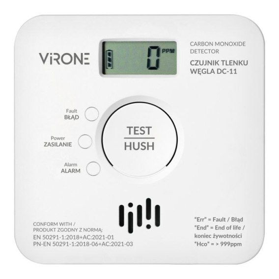 BATERYJNY CZUJNIK TLENKU WĘGLA ( CZADU )10 LAT VIRONE