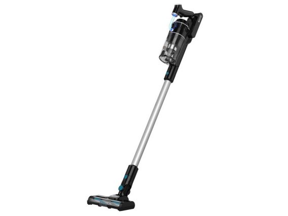 Odkurzacz zasilany jest przez baterię akumulatorową, co zapewnia mobilność sprzątania bez ograniczeń kabla zasilającego.