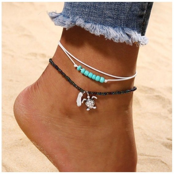 BRANSOLETKA NA NOGĘ KOSTKĘ KORALIKI ŻÓŁWIK B213