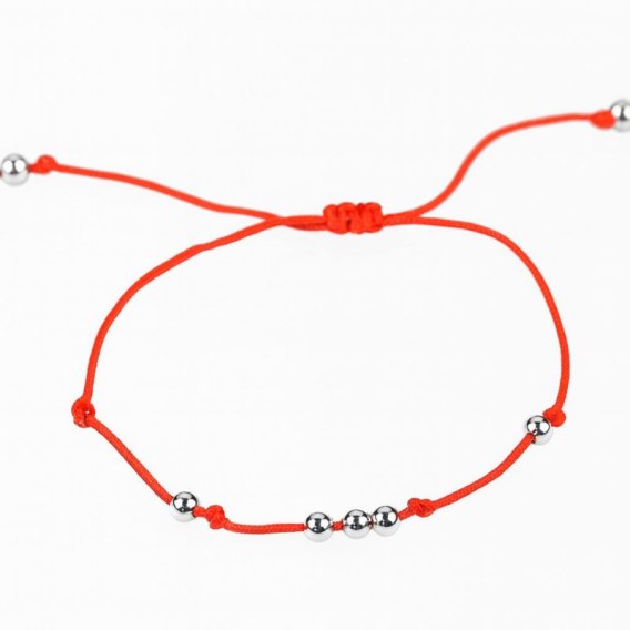 Bransoletka czerwony sznurek DREAM, srebrne kulki BST815