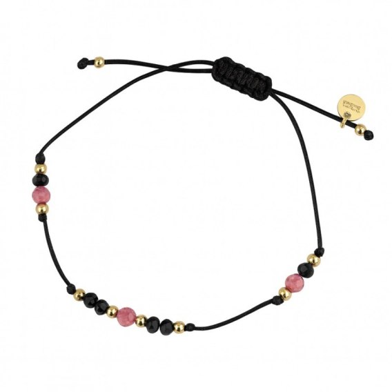 Bransoletka na rękę stal chirurgiczna pozłacana 14k złotem, czarna na sznurku regulowana BST1573