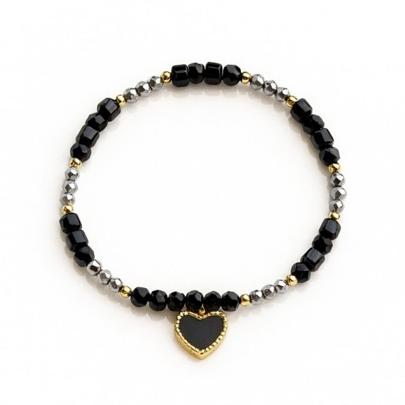 Bransoletka na rękę stal chirurgiczna pozłacana 14k złotem, czarne Serce, na gumce BST1566