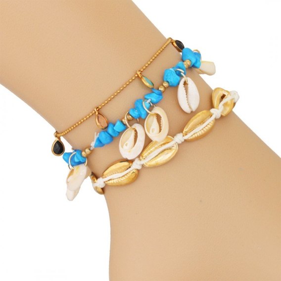 Bransoletka na stopę 3w1 złota koraliki turkusy B523