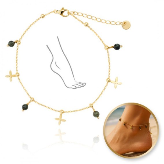 Bransoletka na stopę stal chirurgiczna pozłacana 14k złotem, kamienie - BST1561