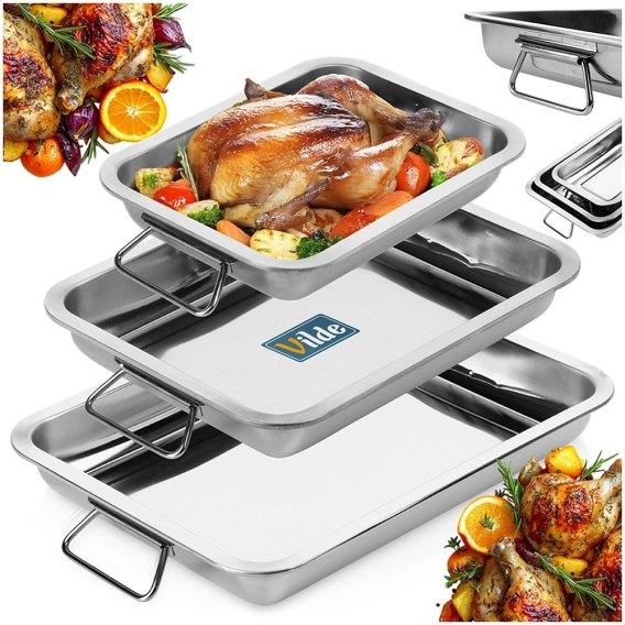 Brytfanny Blachy do Pieczenia Stalowe Prostokątne z Uchwytami VILDE 3 szt.