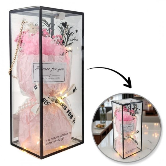 Bukiet zapachowych kwiatów mydlanych w pudełku na prezent, świecące LED BUK20