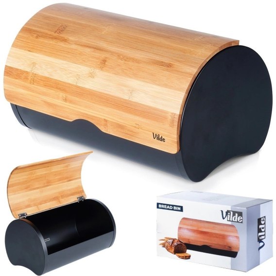 ⭐ Wykonany z drewna bambusowego oraz stali - Konstrukcja chlebaka wykonana jest ze stali węglowej malowanej proszkowo na czarny, matowy kolor. Pokrywa chlebaka wykonana z drewna bambusowego. Metalowa konstrukcja skutecznie chroni pieczywo przed zgnieceniem i uszkodzeniami.