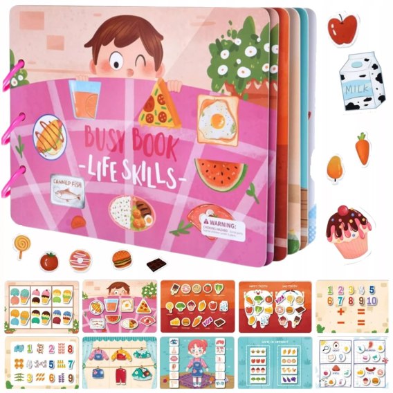 Interaktywna książeczka edukacyjna Busy Book „Life" to wielotematyczna pomoc rozwojowa dla dzieci 3+, która łączy naukę i zabawę w jednym zestawie. Dzięki elementom mocowanym na rzepy dziecko aktywnie uczestniczy w procesie nauki, ćwicząc motorykę małą, koncentrację oraz logiczne myślenie.