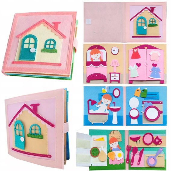 Kolorowa cicha książeczka sensoryczna filcowa z motywem domu to kreatywna i rozwijająca zabawka edukacyjna dla dzieci. Zaprojektowana tak, aby wspierać rozwój motoryki małej, logicznego myślenia oraz samodzielności poprzez zabawę.