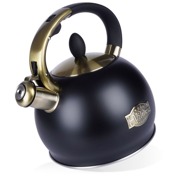 Efektowny czajnik wykonany z najwyższej jakości materiałów. Wykorzystamy go do zagotowania wody na kawę, herbatę czy do zaparzenia ziół. Wygodny w użytkowaniu, dzięki rączce, pokrywce oraz automatycznemu gwizdkowi. Wodę w czajniku zagotujemy bardzo szybko, a czyszczenie go jest bardzo wygodne. Czajnik jest świetnym pomysłem na prezent. UWAGA! Czajnik do gotowania musi być napełniony co najmniej do połowy aby zapobiec przegrzaniu. Zmiany koloru na powierzchni zewnętrznej w przypadku nieprzestrzegania minimalnych parametrów użytkowych nie mogą być powodem do reklamacji.Oryginalny produkt marki Vilde.Wyprodukowano zgodnie z europejskimi standardami.