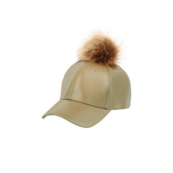 Czapka z daszkiem Skórkowa z pomponem CZ14ZIE
