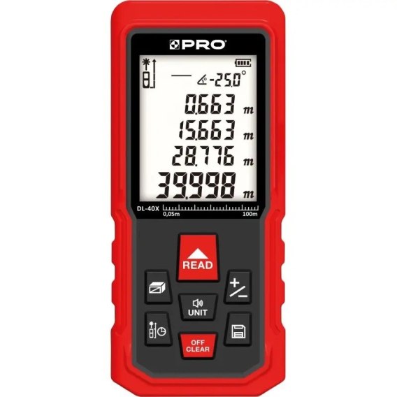 Dalmierz laserowy DL-X służy do pomiarów odległości, powierzchni oraz kubatury wybranego obiektu.