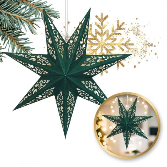 DUŻA GWIAZDA PAPIEROWA ŚWIĄTECZNA AŻUROWA welurowa zielona 45 cm WITRAŻ 3D WG10