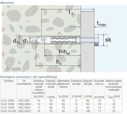 DYBEL UNIVERSALNY WKRĘT ŁEB SZEŚCIOKĄTNY GXS 10/60MM ARVEX