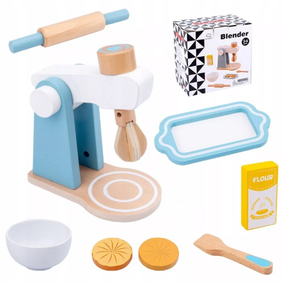 Zabawka została wykonana w całości z wysokiej jakości drewna, co zapewnia jej trwałość, estetyczny wygląd oraz bezpieczeństwo użytkowania. Dzięki obrotowej trzepaczce i odchylanemu ramieniu miksera dziecko może odgrywać realistyczne scenki kuchenne, ucząc się przy tym podstawowych czynności kuchennych.