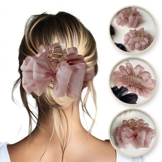 Duża kokarda tiulowa, spinka do włosów, klamra czarna XL 15x8cm cm SP334R