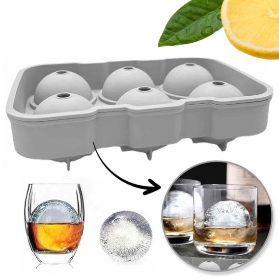 Foremki silikonowe do kostek lodów, na 6 dużych kulek lodu, szary FNL01