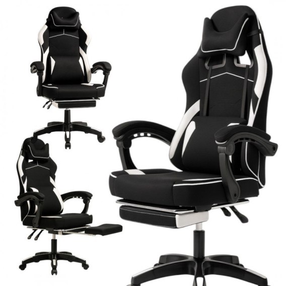 KOMFORTOWY FOTEL GAMINGOWY Z PODNÓŻKIEM Specyfikacja fotela gamingowegomaksymalne obciążenie 150 kgwysokość z oparciem: 120-130 cmwysokość siedziska: 45- 55 cmgłębokość siedziska: 48 cmszerokość siedziska: 48 cmcałkowita szerokość fotela: 62 cmwaga 14 kgWymiary kartonu z krzesłem: 80 x 25 x 59 cmWaga fotela z opakowaniem: 15,5 kgMateriał: tekstylny, w środku zastosowana wysokiej jakości pianka EPE Cechy:oparcie, zagłówek powleczone materiałemregulacja kąta odchylenia oparcia wraz z blokadąpodłokietniki pokryte gąbką oraz materiałem tekstylnymstabilna i wytrzymała pięcioramienna podstawawysokiej jakości kółka plastikowe regulowana poduszka lędźwiowa z masażeremkomplet dwóch poduszek w zestawieREGULACJA - fotel posiada regulacje wysokości siedziska. Dzięki temu możesz dostosować jego wysokość do swoich indywidualnych potrzeb co jest niewątpliwą zaletą. Możliwość regulacji odchylenia fotela, (90 -155 stopni) gwarantuje Ci chwilę relaksu i rozluźnienia. Zdjęcia poniżej przedstawiają rzeczywisty produkt.