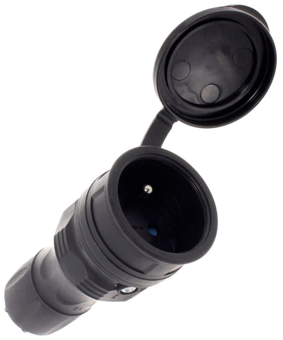 Wtyczka złączona z gniazdem tworzy zestaw o poziomie ochrony IP 54 co sprawia, że złącze zapewnia ochronę przed wnikaniem kurzu, brudu i piasku oraz strumieniem wody z dowolnego kierunku.