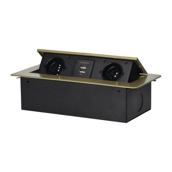 GNIAZDO WPUSZCZANE W BLAT 2X2P+Z, 2XUSB PŁASKI RANT MOSIĄDZ ORNO