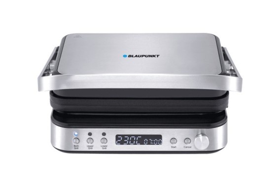 Elektroniczna regulacja temperatury i czasu grillowania, timmer, nienagrzewające się uchwyty, wysuwana szufladka na spływający tłuszcz oraz wyświetlacz informujący o parametrach pracy, dopełniają komfortu obsługi.