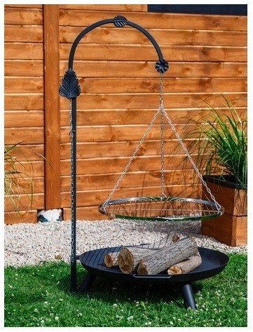Żóraw grillowy + palenisko + ruszt chromowany to niezbędny element każdego udanego grillowania. Trójnóg wykonany z wytrzymałej stali kotłowej, Idealny do używania w ogrodzie, na działce, czy podczas wypadów na łono natury.