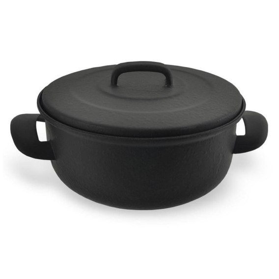 EMALIOWANY - Garnek z dwoma uchwytami i pokrywką, wykonany w całości ze stali emaliowanej. Garnek ma pojemność 3 litrów i wymiary 12 x 20 cm. Przystosowany do gotowania z minimalną ilością tłuszczu - idealne dla osób dbających o linie. Na zewnątrz naczynie pokryte czarna matową emalią, dzięki czemu posiada swój niezwykły tradycyjny charakter.