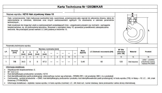 HAK ZRYWKOWY 7/8MM HZ10 LC60KN TITANOBOA KL.10 UN