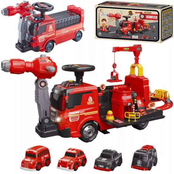 Jeździk 2w1 straż pożarna autka parking dźwig dźwięk pistolet na wodę ZH921 Luxma