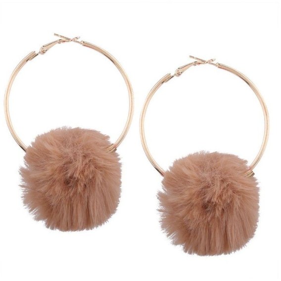 KOLCZYKI KOŁA POMPON BEŻOWE K632BEZ