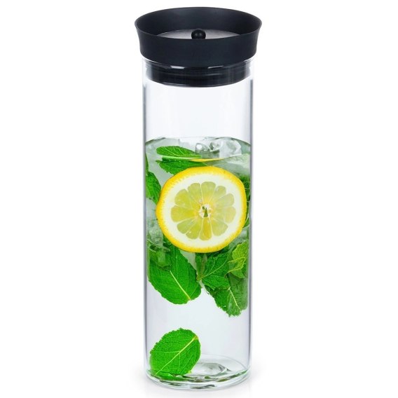 <li><strong>SZKŁO BOROKRZEMOWE</strong> - Dzbanek w formie zamykanej karafki do napojów. Wykonany z przezroczystego szkła borokrzemowego. Pokrywka wykonana z silikonu oraz stali nierdzewnej. Dzbanek ma pojemność 1 l i wymiary zewnętrzne 9 x 28 cm, średnica karafki wynosi 8 cm.</li>