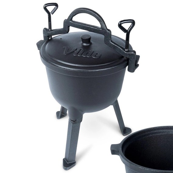 <p>Okrągły kociołek żeliwny na nóżkach z pokrywką i uchwytem do zawieszenia. Idealny do gotowania, pieczenia, duszenia oraz smażenia potraw na ognisku, grillu lub nad otwartym ogniem. Potrawy przygotowane w kociołku będą soczyste i aromatyczne. Przydatny w trakcie różnego rodzaju spotkań, uroczystości czy imprez organizowanych na świeżym powietrzu. <strong>Oryginalny produkt marki Vilde z linii Cast Line.</strong> Wyprodukowano zgodnie z europejskimi standardami.</p>