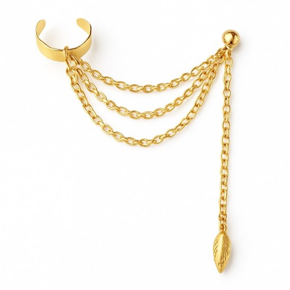Kolczyki nausznice z listkiem, łańcuszki K625Z