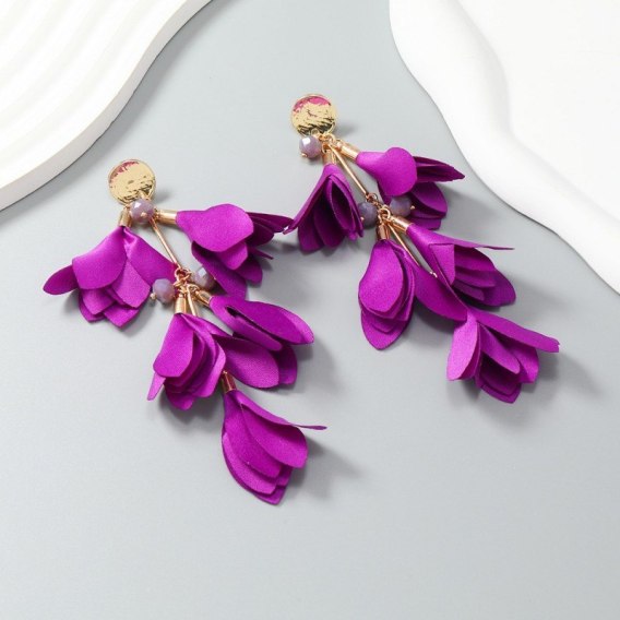 Kolczyki wiszące, efektowne tiulowe kwiat, fioletowe K1705