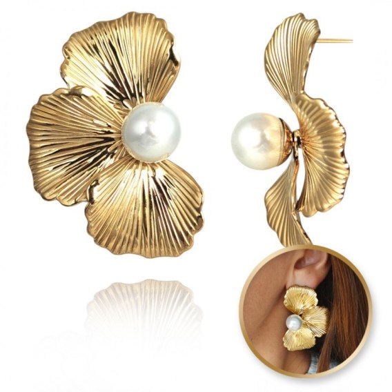 Kolczyki ze stali szlachetnej platerowane 14k złotem KWIAT perełki KST3360