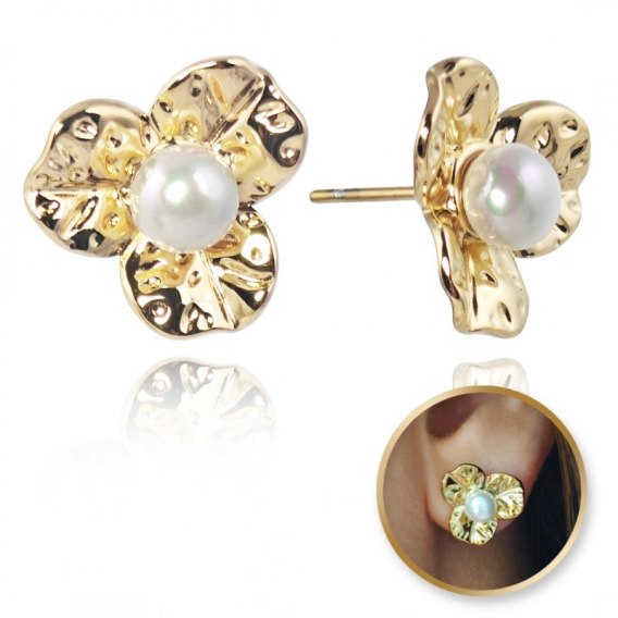 Kolczyki ze stali szlachetnej platerowane 14k złotem KWIATKI, perełi KST3358