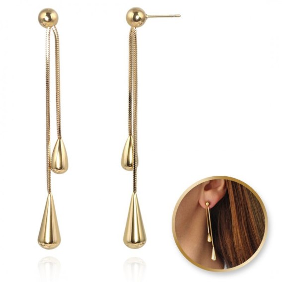 Kolczyki ze stali szlachetnej platerowane 14k złotem ŁEZKI wiszące KST3349