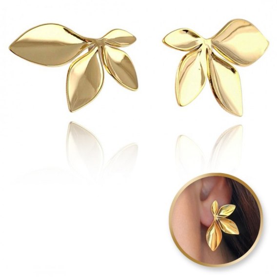 Kolczyki ze stali szlachetnej platerowane 14k złotem LISTKI KST3227