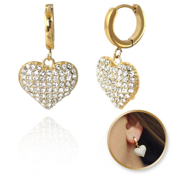 Kolczyki ze stali szlachetnej platerowane 14k złotem SERCA cyrkonie KST3348