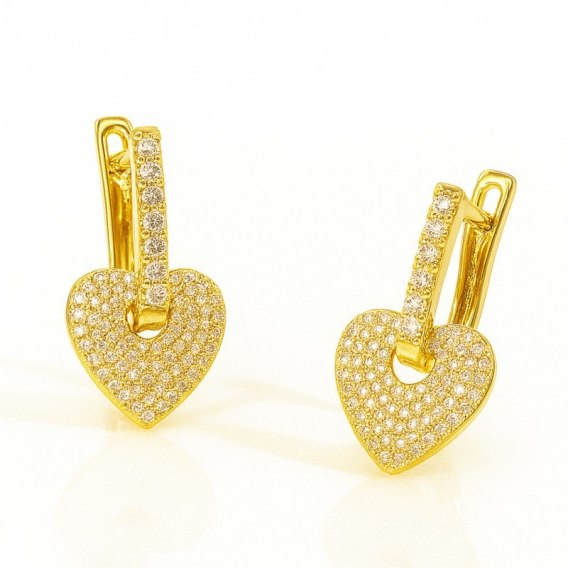 Kolczyki ze stali szlachetnej pozłacane 14k złotem, cyrkonie serca KST3495