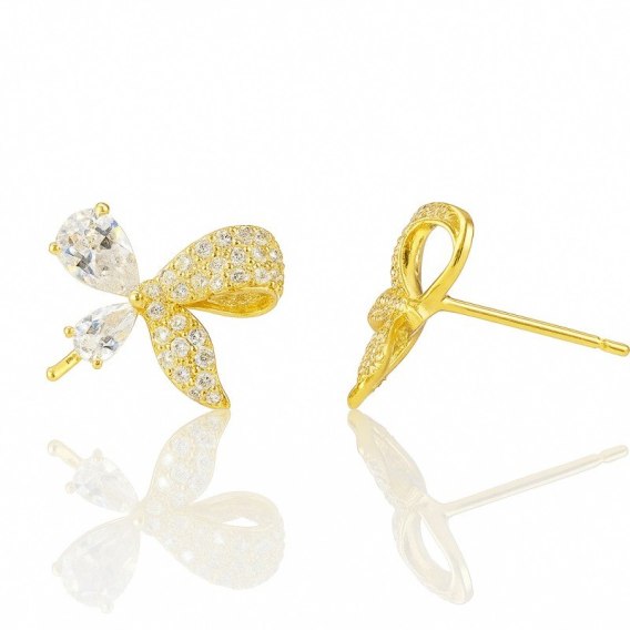 Kolczyki ze stali szlachetnej pozłacane 14k złotem, kokardka cyrkonie KST3494