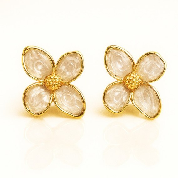 Kolczyki ze stali szlachetnej pozłacane 14k złotem, kwiaty, masa perłowa KST3480