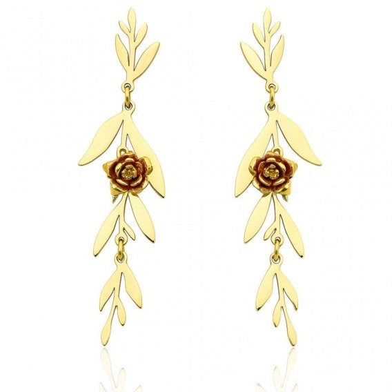 Kolczyki ze stali szlachetnej pozłacane 14k złotem, wiszące kwiaty KST3441