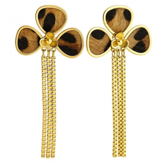 Kolczyki ze stali szlachetnej pozłacane 14k złotem, wiszące panterka KST3443