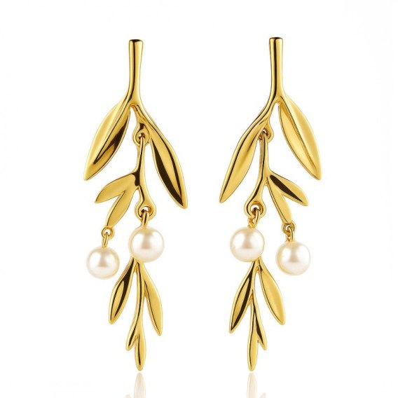 Kolczyki ze stali szlachetnej pozłacane 14k złotem, wiszące z perełkami KST3438