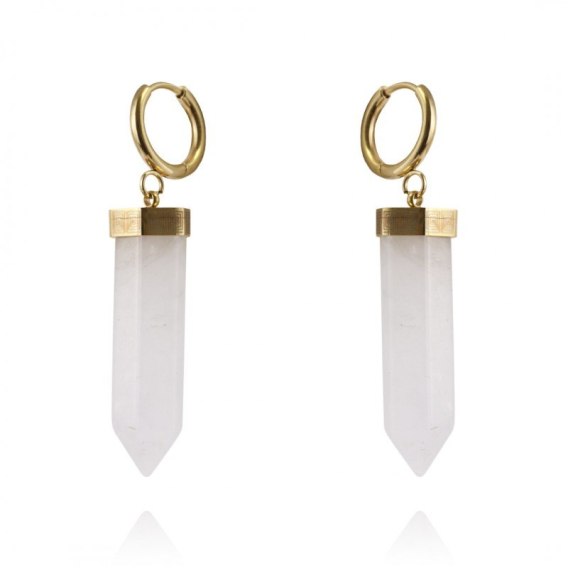 Kolczyki ze stali szlachetnej pozłacanej 14k złotem kryształ górski KST2904B