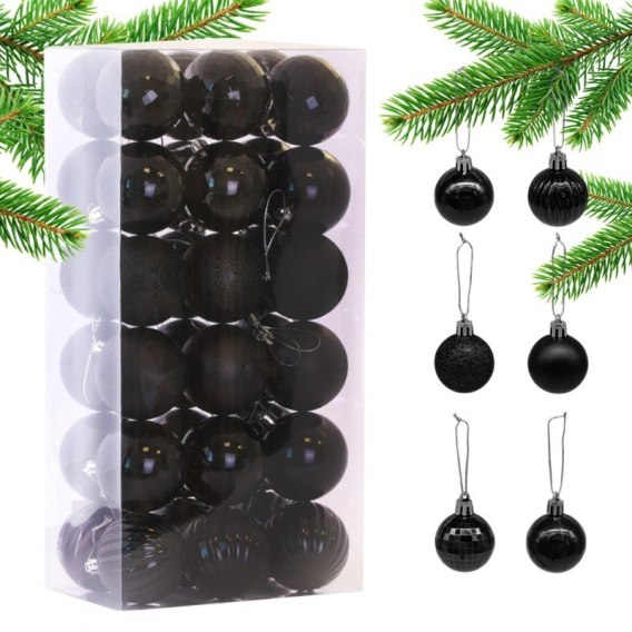 Komplet bombek 36szt w opakowaniu czarne 5,5cm, bombki na choinkę BSN08WZ3